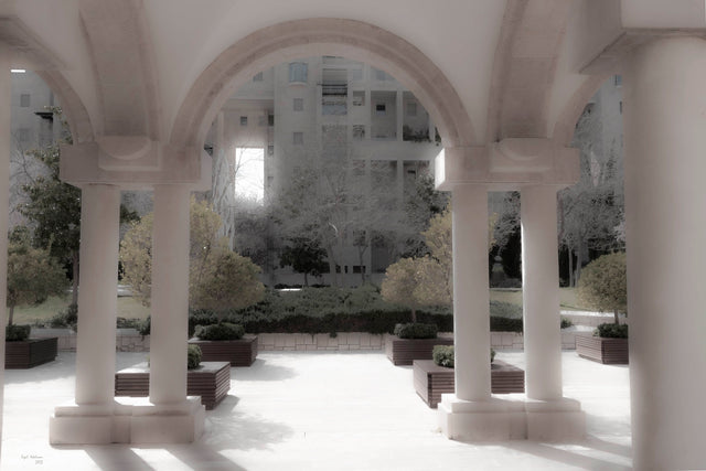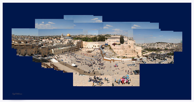 In the series of photographs "Jerusalem – A city joined together," central sites of Jerusalem are shown, with each site being a layered collage of many individual photographs (using a technique inspired by the artist David Hockney). This technique expands the framework of a single photograph and provides a sense of space and depth.